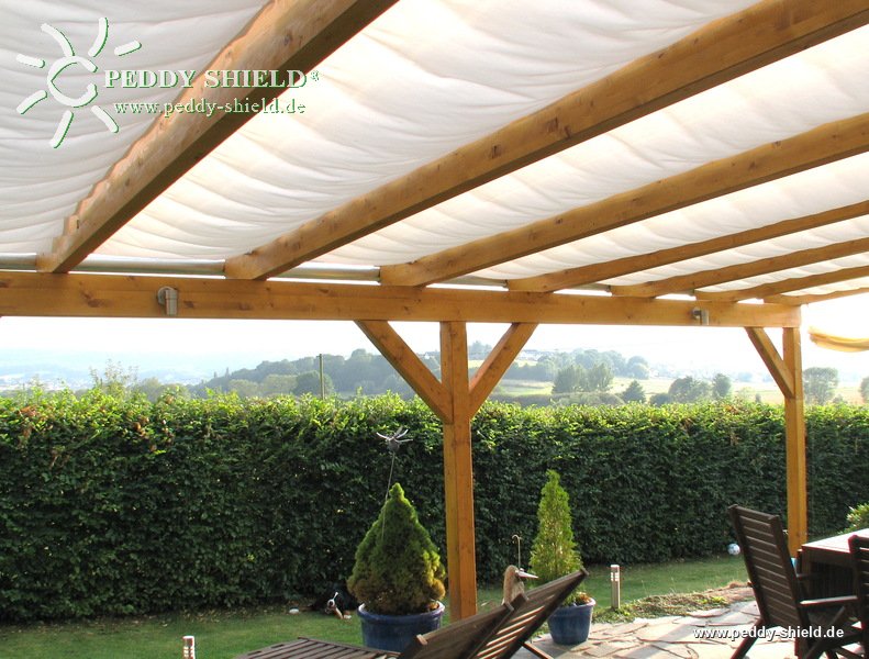 Ein Baldachin Faltsonnensegel bekommen Sie von Peddy Shield