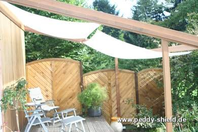 - für diesen Sonnen- und Regenschutz brauchen Sie keine teure Statik, weil das Segel Wasser ablaufen läßt und es im Winter abgenommen wird, so daß extreme Wind, - Regen- oder Schneelasten nicht berücksichtigt werden müssen