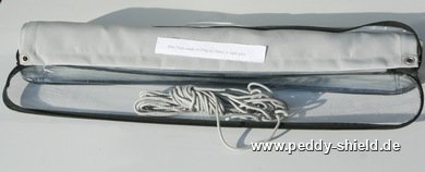 - Befestigung über Metallösen und eine lange Kordel - entlang der lanen Seiten oben und unten