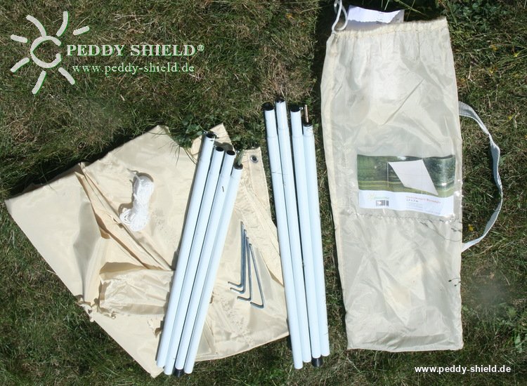 Ein schnell aufgebauter und "tragfähiger" Sonnenschutz, Sichtschutz und leichter Windschutz im Freien